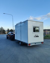 Undertecknad (Robert) har varit uppe på mässan Nordbygg i Stockholm och köpt ytterligare en rastvagn som ska ut till kund inom kort. Direkt när klockan slog 17 och mässan stängde så startade projektet att försöka få ut vagnen från montern så fort det bara gick innan vägen blockerades. Med god hjälp från killarna på rastvagn.se så lyckades vi få ut den på rekordtid.