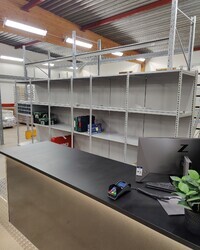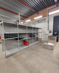 Dagens kvällspass bestod av att bygga hyllsystem för våra småmaskiner så att vi snabbt når dem från kassan.