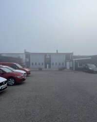 Begränsad sikt på morgonen. Men det spricker snart upp. Maskinerna står uppradade och redo att hyras ut över helgen.