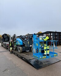 Idag rullar vi ut batteridrivna bomliftar till våra kunder i den lokala industrin. Här ser ni Stefan och Igor i full gång med att lasta lift nummer två till samma kund. Håll utkik efter våra miljövänliga maskiner – vi är här för att göra ert jobb både enklare och grönare!
