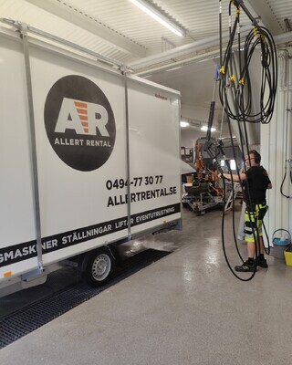Stefan tvättar av vår tredje och nyaste rastvagn inför leverans till kund.