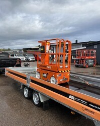 Alla våra pelarliftar var uthyrda och en kund hörde av sig och behövde en till. Inga problem, vi ser till att ordna det. Fem minuter senare var en ny lift beställd med omgående leverans. Imorse dök den upp hos oss och en timme senare var den funktionskontrollerad, hade fått nya dekaler och var lastad på släpet.