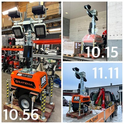 Igår fick vi ett samtal från Södra Wood som ville hyra en belysningsmast. Alla var uthyrda så det vara bara att ringa vår leverantör Satema och beställa ytterligare en mast. Idag 10.15 levererades den till oss och 11.11 var den fastspänd på lastbilen redo att köras ut till kunden.