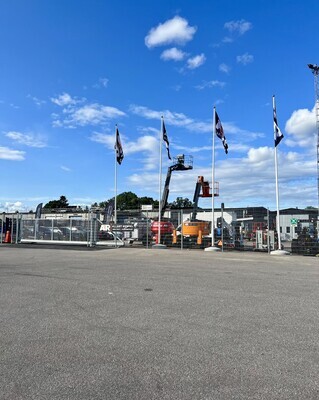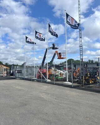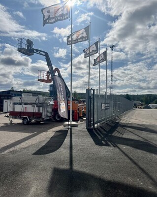 Vi passade även på att få upp flaggstänger med Allert Rentals flagga. Självklart kan du hyra flaggstängerna av oss om du vill det. De är 9m höga med en flyttbar vikt på 450kg.