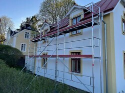Nya ställningsvagnen med fasadställning ute på sitt första uppdrag!