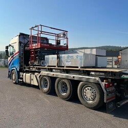 Nu på morgonen lastade vi gips och en saxlift åt en kund.