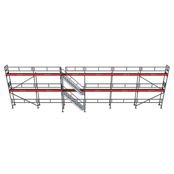 Detta är 6 st sektioner på längden och två våningar på höjden, bomlagen ligger på 2m till 2,5m och 4m till 4,5m beroende på hur mycket man justerar upp fötterna.