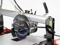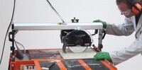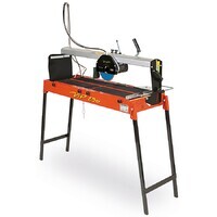 Vattenkyld diamantsåg. 1000 W. För kakel, klinker, granitkeramik, marmor. Jollykapning genom vinkling av styrskenan. Höj och sänkbar motor/klinga. Kullagrad styrskena i aluminium. Integrerad benställning. Levereras med benställning och slät diamantklinga 200 mm. Tillsatsbord för extra breda plattor medföljer.