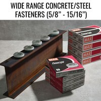 20 barsverktyg för spikning i betong och stål. Lätt och balanserat verktyg med plastrullbandning à 100 spik per rulle. Justerbart slagdjup. Spiklängder, 15–25 mm. För spikning av plåt och metall i betong. MAX HN25 är vårt högtrycksverktyg för smidig spikning i betong och stål. Perfekt för att spika stålreglar i betong, men också rörklämmor och skivor mot betong. Det högre trycket, den låga vikten, den låga rekylen och det stora magasinet innebär att du kan jobba med få avbrott. Utan att slita ut dig.