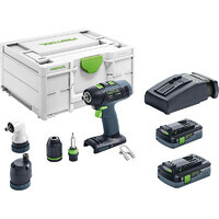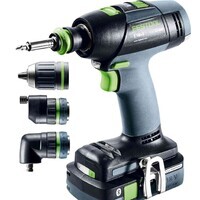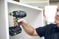 För full flexibilitet när du borrar och skruvar: helt elektronisk vridmomentinställning, CENTROTEC snabbytessystem, vinkel- och excentertillsats samt djupanslag underlättar alla borr- och skruvarbeten. Kombinationen av Li-HighPower-batteri och borstlös, underhållsfri EC-TEC-motor gör skruvdragaren T 18+3 lätt, hållbar och uthållig. För att du ska kunna jobba utan bekymmer är både skruvdragaren och batteriet helsäkrade med Festool Service.