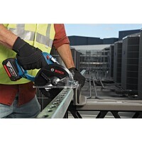 Batteridriven 18V-modell för snabb och noggrann metallkapning – i stort sett gnistfritt. För snabba skär och nästan helt utan gnistor. Stark såg med hög kapacitet. LED-belysning, sågfot i aluminium.