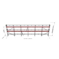 Detta är 6 st sektioner på längden och två våningar på höjden, bomlagen ligger på 2m till 2,4m och 4m till 4,4m beroende på hur mycket man justerar upp fötterna.