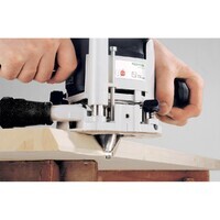 Kompakt och lätt mångsidig fräs lämplig för de flesta applikationer. Fräsdjupet kan ställas in med 1/10 mm-precision. Kan styras exakt med en hand utmed kanter, linjer eller svängda former. Kan byggas ut flexibelt med frässystem, schablonsystem, hålradssystem och förbindningssystem.