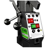 Magnetborrmaskin för håltagning i stålkonstruktioner med höj- och sänkbart borrhuvud för borrning med såväl kärnborr som spiralborr. Utrustad med en kyvätskebehållare som automatiskt smörjer kärnborret under operationen. Maskinen har spindelkona Weldon 19.05.