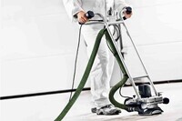Renoveringsfräsen RG 150 med en verktygsdiameter på 150 mm och ett brett tillbehörsprogram garanterar snabbt tempo på stora ytor. I kombination med adaptern för stående arbete tar man bekvämt bort massagolv, ytskikt och limrester. Förlätt arbete på väggen i stället för golvet utjämnas maskinens vikt med balanseringsblocket.